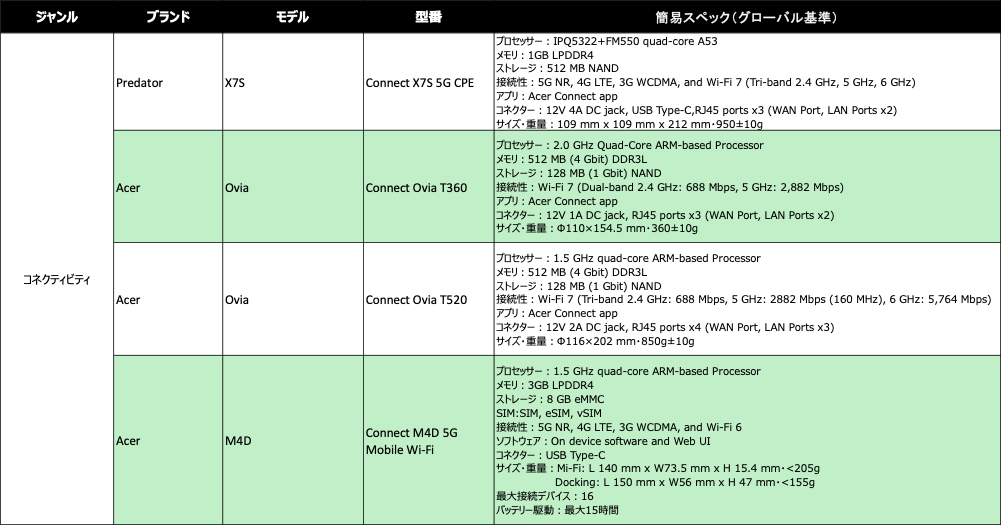 今回発表された製品を一覧にてご紹介いたします。