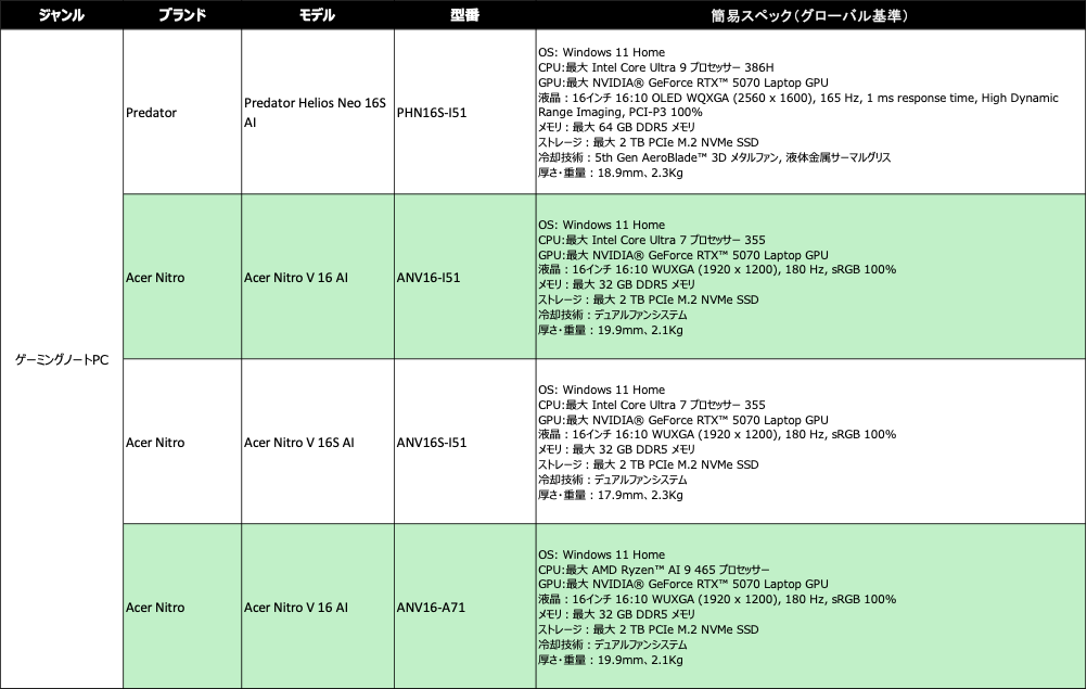 Acer Nitro V 16 AI (AMD Ryzenモデル)