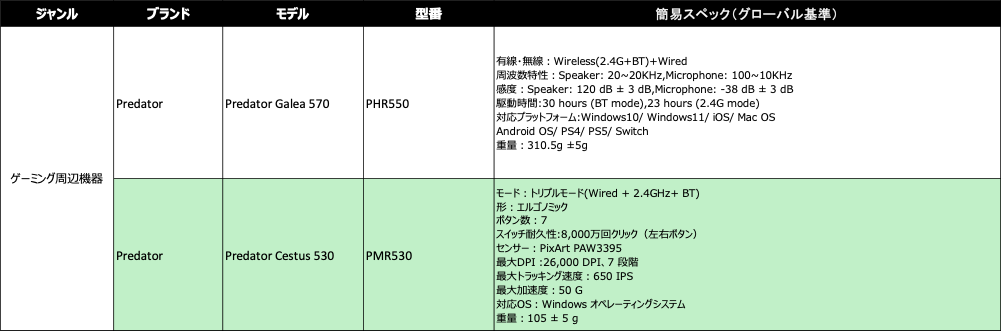 ゲーミング周辺機器 製品