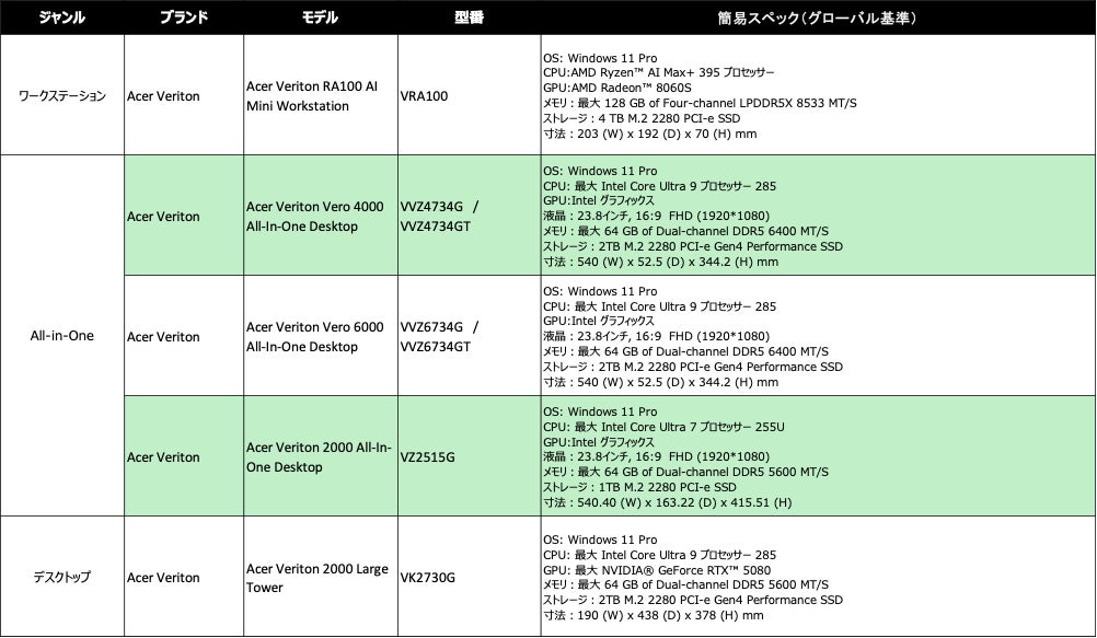 AIクリエイション用途を前提に設計された Acer Veriton RA100 は、3Dデザインをはじめ、ローカルLLMや生成AIアプリケーションの開発・運用、高解像度アセットの編集・レンダリングを高速化。デザイン、コーディング、軽度のゲーミングまで幅広い用途をカバーします。