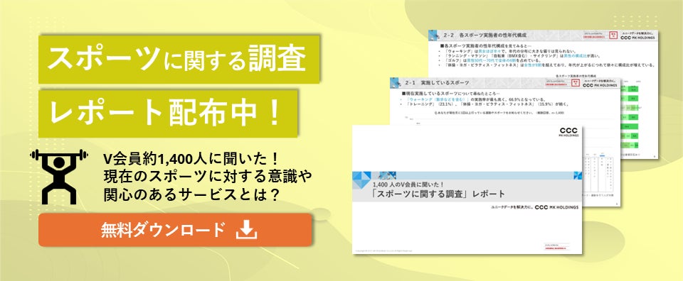 CCCMKホールディングス株式会社(本社:東京都渋谷区、代表取締役社長 兼 CEO:髙橋誉則)は、このたび、全国20~79歳のV会員1,400名を対象に、インターネット上での意識調査「Vアンケート」によって、『スポーツに関する調査』を実施しましたのでお知らせいたします。
