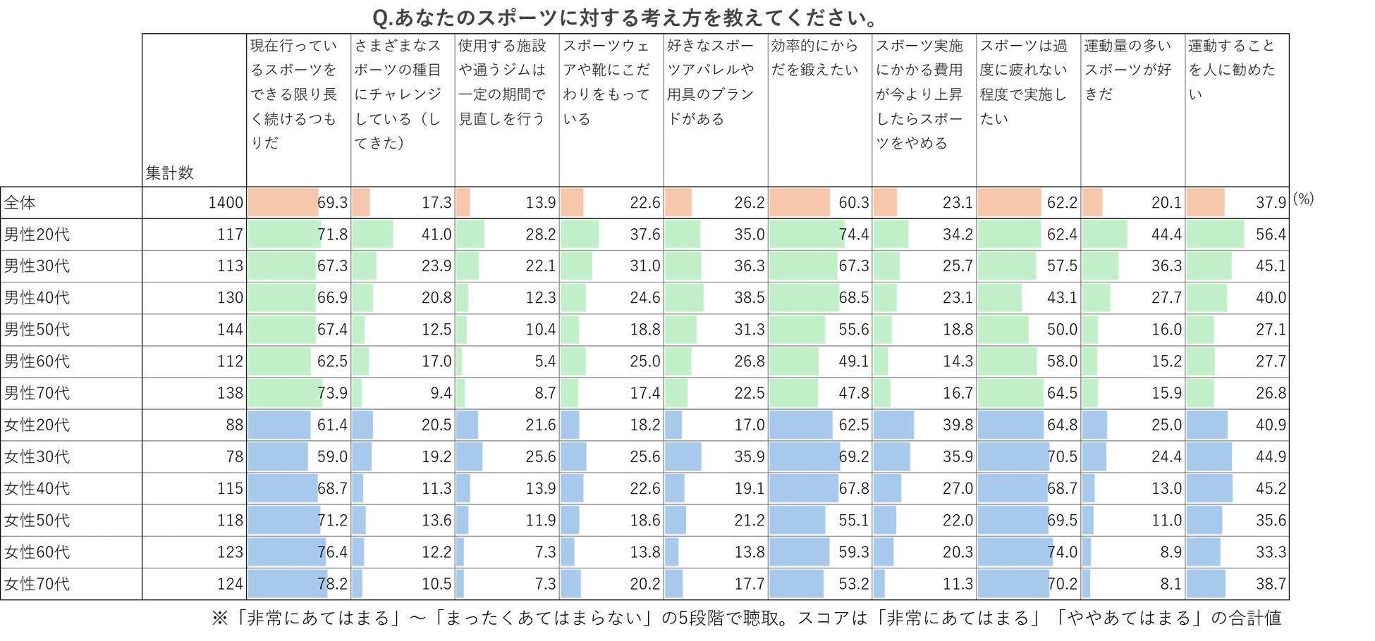 続いて、スポーツに対する意識を性年代別で分析しました。