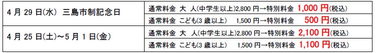 【箱根小涌園ユネッサン】4月29日(水)は三島市制記念日!「勝手に三島市民割!」キャンペーン実施!4月29日当日は入場料が1,000円ポッキリで超おトク!