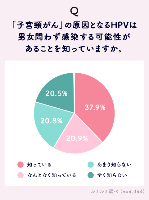 Q.「子宮頸がん」の原因となるHPVは男女問わず感染する可能性があることを知っていますか。