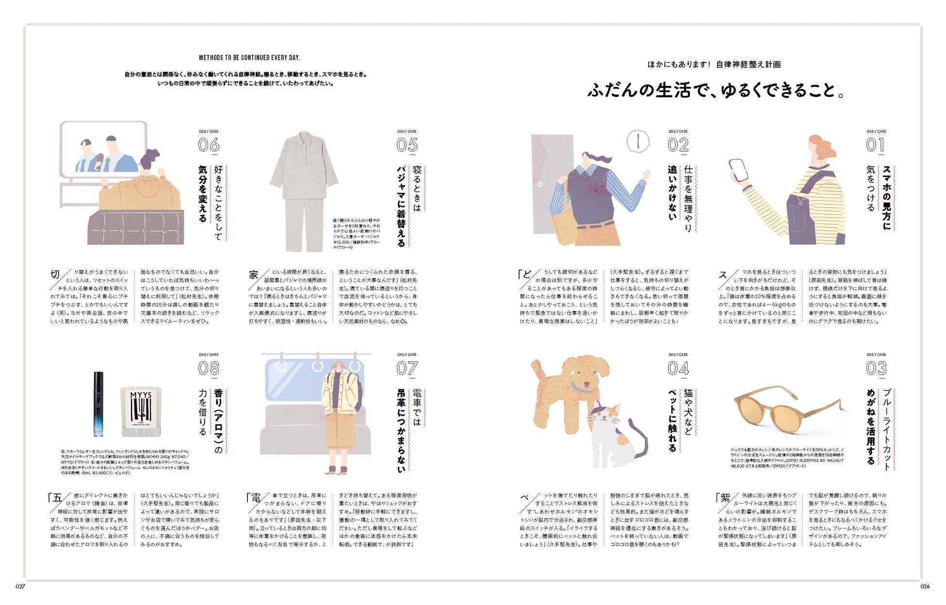 自分の意思とは関係なく、休みなく働いてくれる自律神経。寝るとき、移動するとき、スマホを見るとき。いつもの日常の中で頑張らずにできることを続けて、しっかりいたわってあげたい。