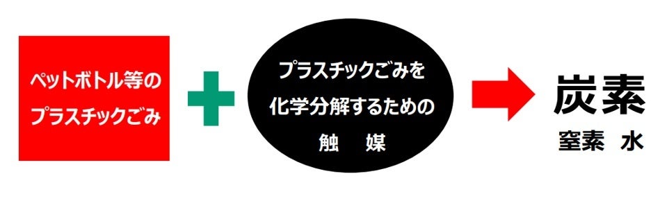 ペットボトル等のプラスチックごみを、化学分解により炭素化する機械です。プラスチックごみを化学分解するための触媒とプラスチックごみを、80度から200度の温度域で所定の時間、接触させることで、プラスチックごみが炭素化します。燃焼過程がないため、温室効果ガス、すなわち二酸化炭素も、ダイオキシンも、一切発生いたしません。プラスチックごみ炭化装置によりできた炭素は、タイヤの原料やリチウム電池の電極などに再利用することができるため、今まで廃棄処分されていたペットボトル等のプラスチックごみが、新たな付加価値を生み出す材料として生まれ変わることができます。