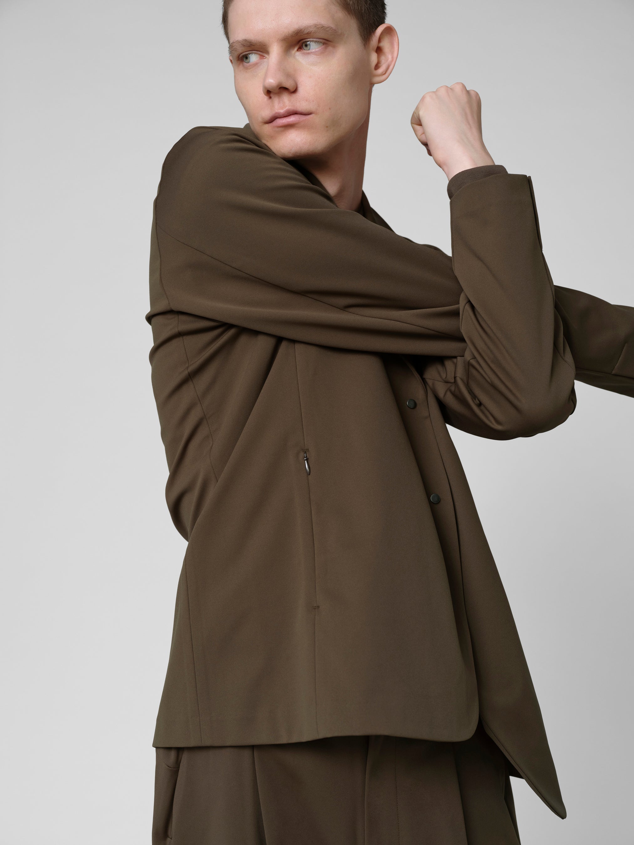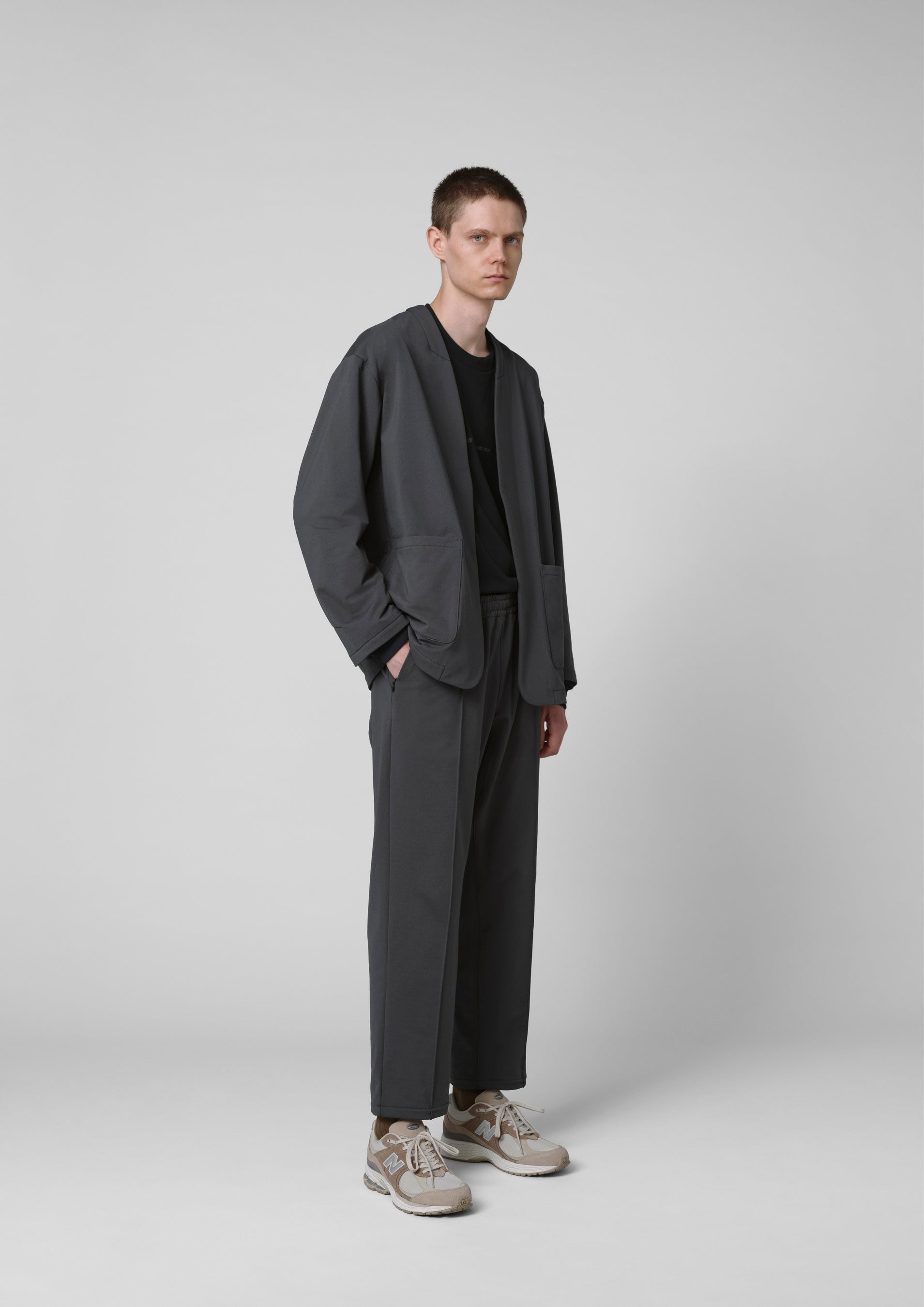 メンズの「Tailored」は、バネ状の分子構造によって着る人の体の動きに合わせて伸縮するTEXBRID🄬の糸を用いて、高密度で編み込まれた両面編みのモックロディ生地を採用。ナチュラルなフィット感でストレスのない着心地を実現しています。MET24定番のシングルジャケット、3つのシルエットのパンツには定番のブラックに加え、秋冬らしいダークマッシュルームカラーも登場します。そのほか、ノーカラージャケットやイージースラックス、ロングスリーブTシャツをラインナップします。