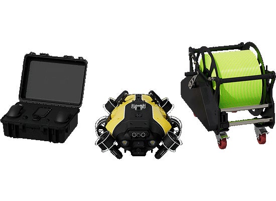 本体 【寸法】770 mm(長)×560 mm(幅)×400 mm(高) 【重量】30 kg 【ペイロード】15 kg 【最大深度】350 m 【スピード】静水で最高4.5ノット 【オプションポート】4ポート カメラ 【台数】4Kx2 (高解像度デュアルカメラ) 【センサー】1/1.8inch CMOS 【有効画素数】12 MP 【ビデオ解像度】最大 4K30fps ライト 【輝度】6000ルーメン x2 テザーケーブル 【長さ】350 m (リール付属) |