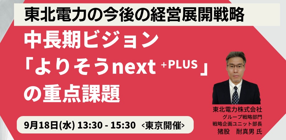 【JPIセミナー】「東北電力グループにおける今後の経営展開戦略 中長期ビジョン”よりそうnext⁺PLUS”の重点課題」9月18日(水)<東京開催>