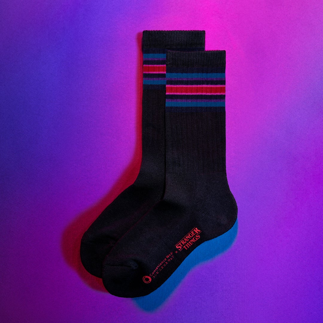 【内容】「ストレンジャー・シングス 未知の世界4」のポスターカラーをモチーフに配色し、足底にはコンビニエンスウェア、ストレンジャー・シングスのWネームのラバープリントを施しております。