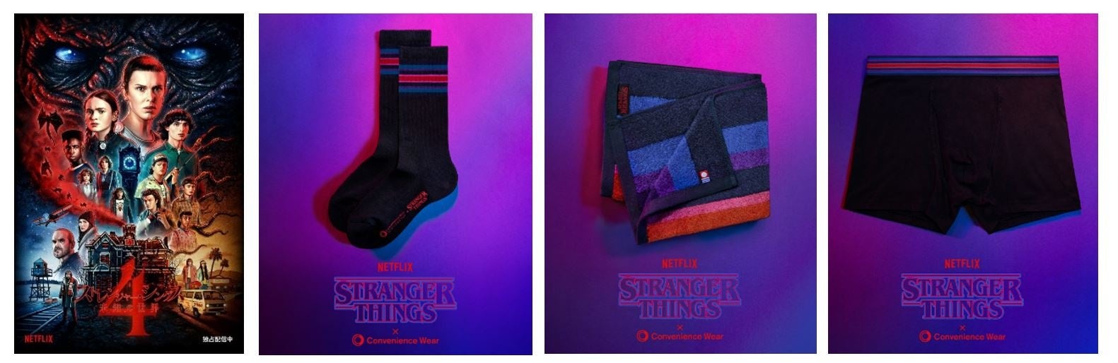 コンビニエンスウェアでは、2016年の配信開始以来世界的な人気を誇るNetflixシリーズ「ストレンジャー・シングス 未知の世界」とのコラボレーションアイテムを昨年7月に販売し、発売直後から大きな反響をいただきました。