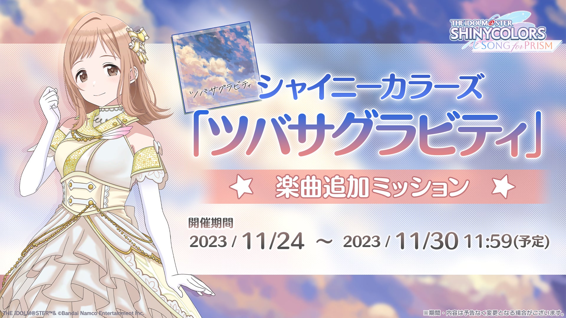 さらに、本日11月24日(金)よりアニメ「アイドルマスター シャイニーカラーズ」第2章 劇場先行上映開始を記念しアニメオープニング主題歌「ツバサグラビティ」を「ライブ」に追加したこともお知らせいたします。