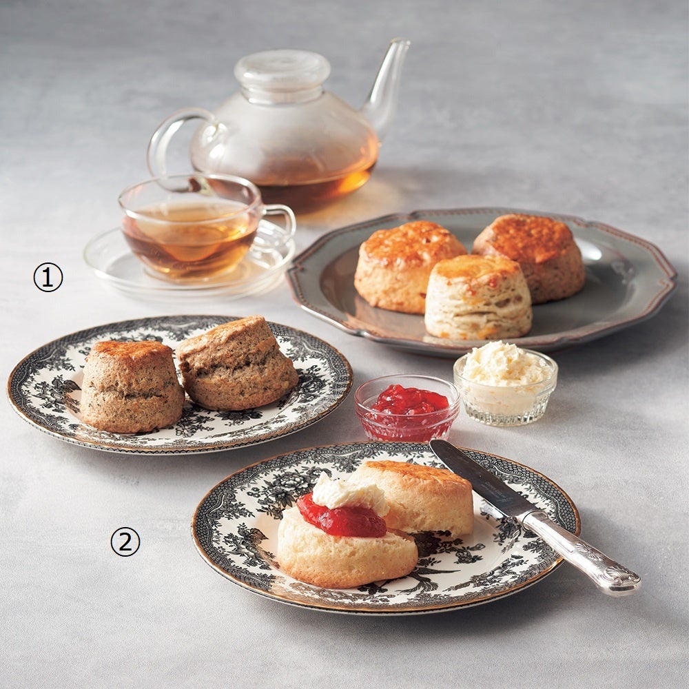 英国の老舗紅茶ブランド〈ファーラーズ〉の茶葉を使用した「レモンアールグレイスコーン」、英国伝統のレシピでつくる「イングリッシュスコーン」。
