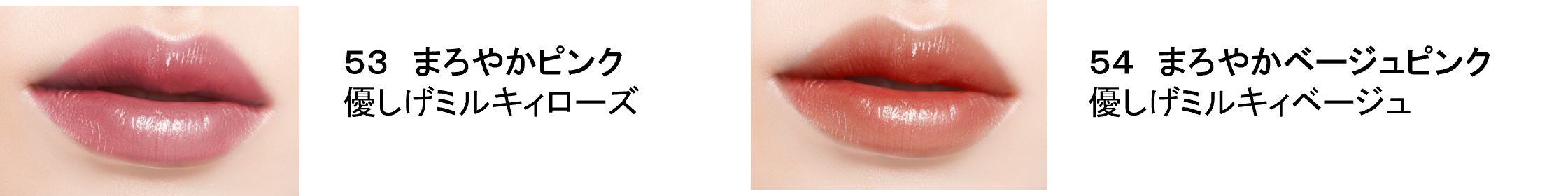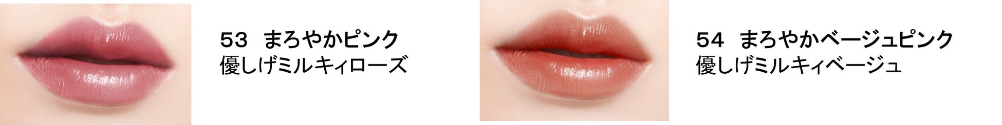肌に溶け込むやさしい色合いのミルキィローズとミルキィベージュが、顔印象をパッと明るく華やかに彩ります。