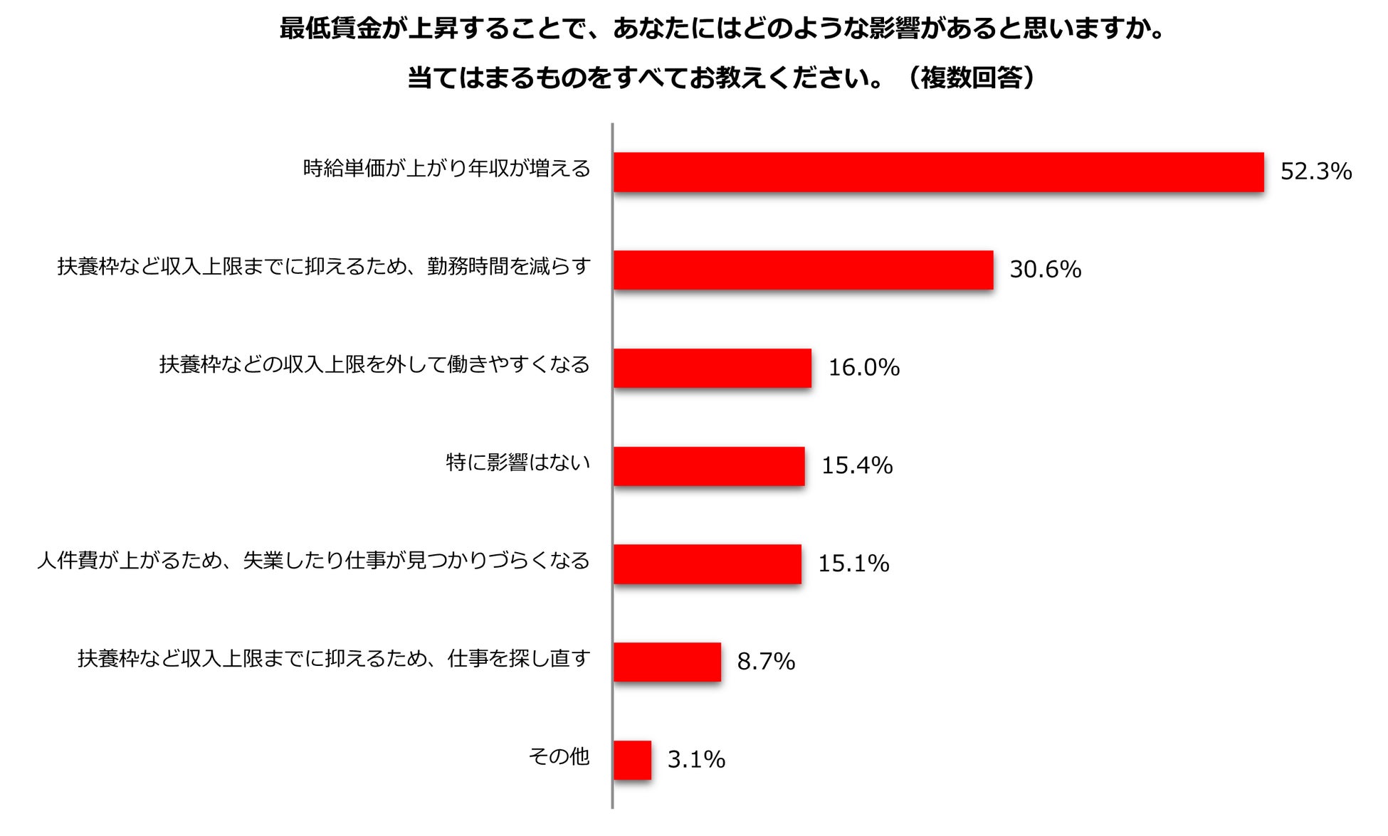 3.最低賃金が上昇することの影響「時給単価が上がり年収が増える」52.3%
