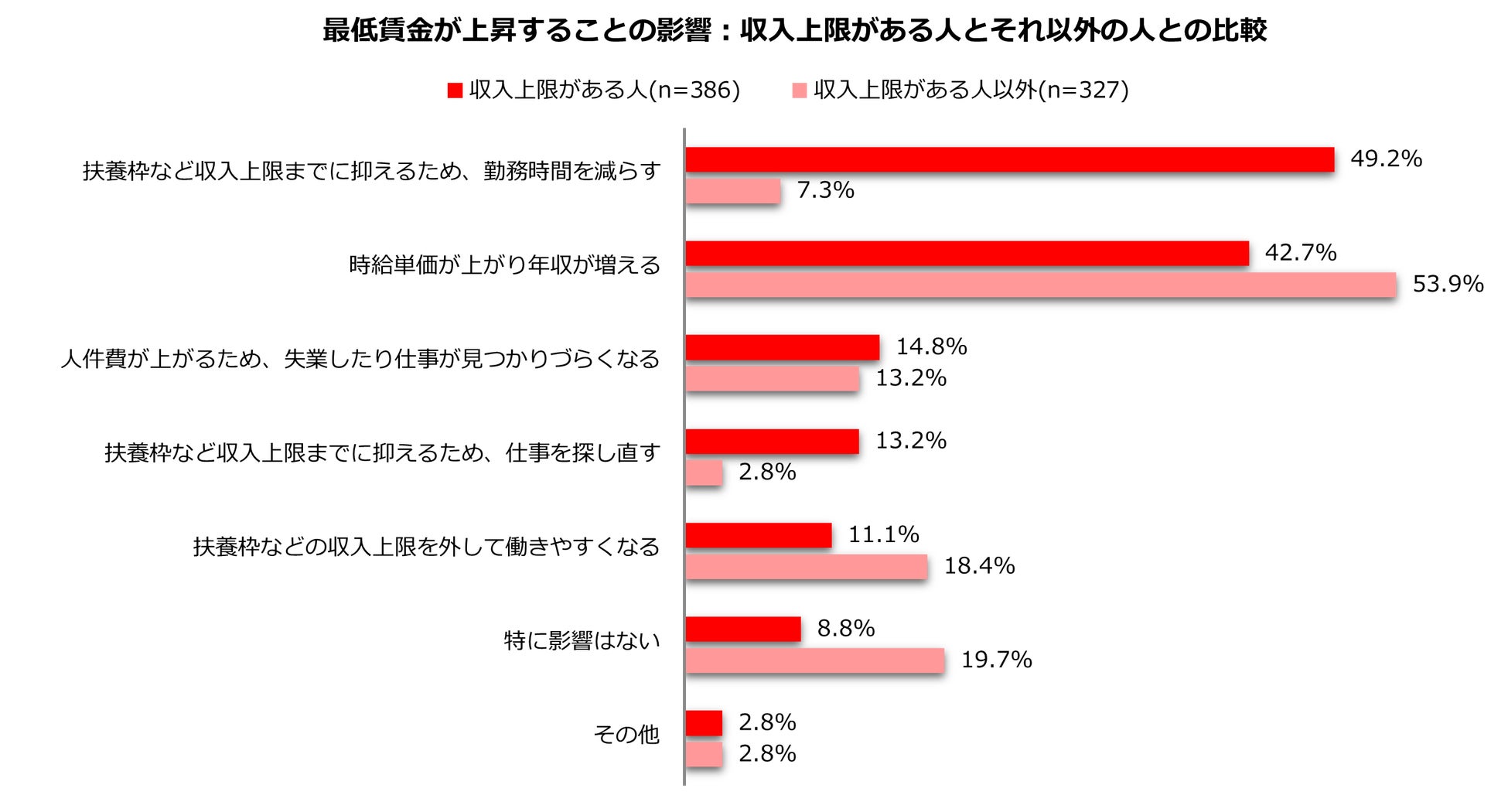 4.最低賃金が上昇することの影響:収入上限がある人「勤務時間減らす」49.2%