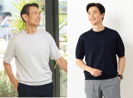 大好評の「Tシャツ」は、全アイテムをダブルジャージ素材にリニューアルし、洗濯後の縮みや襟元のよれを改善しました。今季からは色・柄のバリエーションを豊富に展開し、さまざまなコーディネートをお楽しみいただけます。また、吸汗速乾性と接触冷感性のある素材を採用した夏に最適なアイテムが新登場。