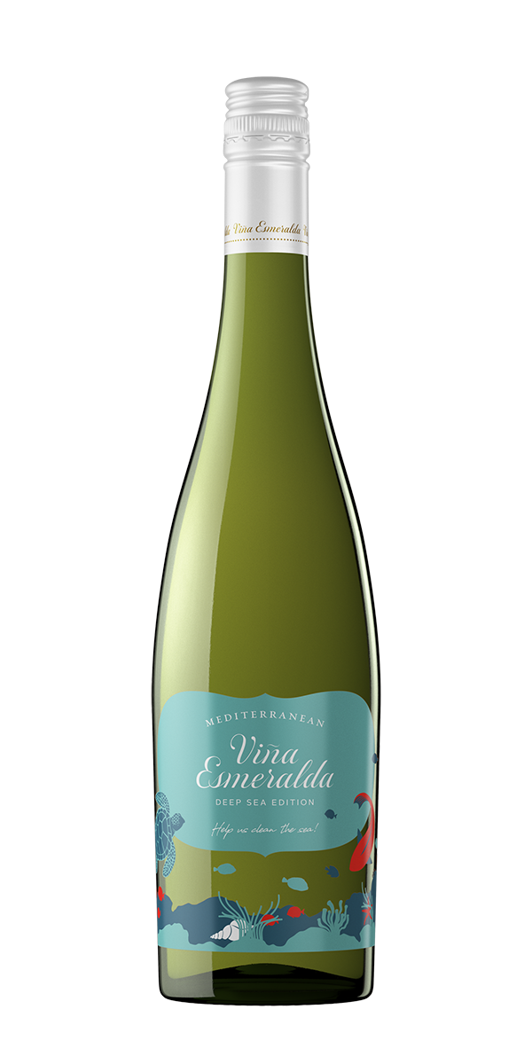 「ヴィーニャ・エスメラルダ」 は、1976年に誕生し、47年に渡り愛され続けているスペインワインです。日本語で、“エメラルドのワイン”を意味し、“地中海など海辺のリゾート地で、仲間とリラックスしながら楽しむワイン”をコンセプトに白・ロゼ・オレンジ・スパークリングの4アイテムを販売しています。昨年に続き、リミテッド・エディションではプラスチックフリーの海を目指す海洋保護団体「グラヴィティ・ウェーブ」とパートナーシップを組み、一本購入につき、地中海に廃棄されたプラスチックボトルを10本回収する取り組みを実施します※。本年のデザインは「深海」をテーマに、活気に満ちた海の世界に敬意をもって、海の多様性を表現しています。