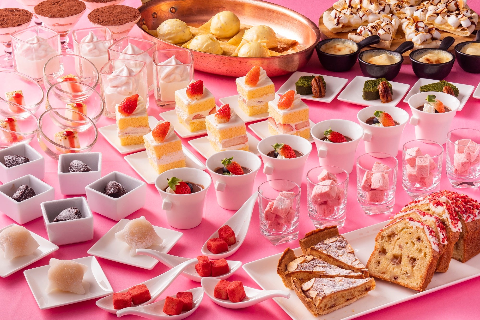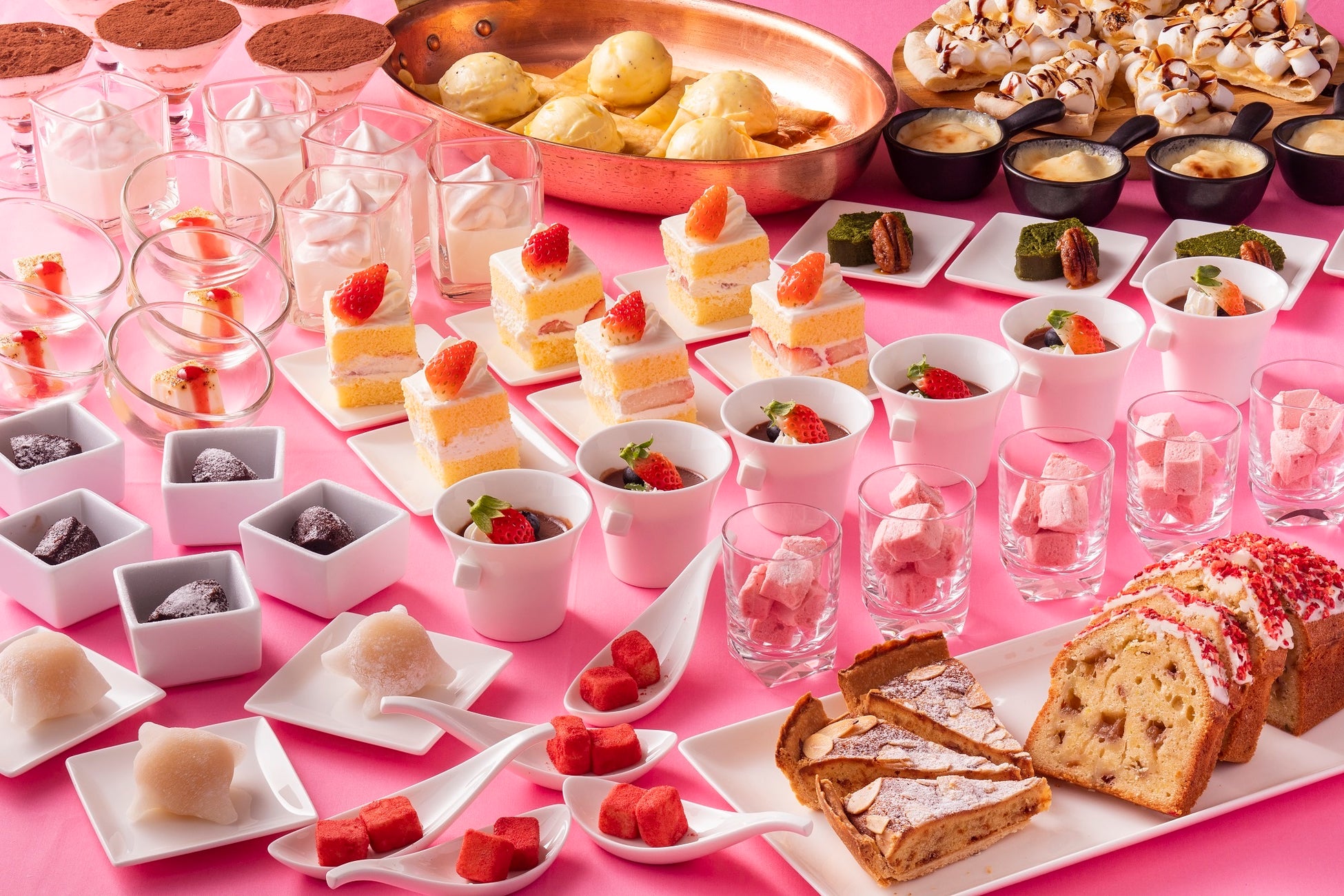 この度、1・2月限定で、デザートを15品まで充実させ、「イチゴのショートケーキ」や「ティラミス」、「ナッツのキャラメリゼタルト」など、バラエティ豊かなスイーツをお好きなだけご堪能いただけます。