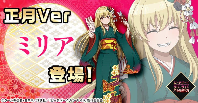 CTW株式会社は、ゲームサービス「G123」にて配信中のHTML5ゲーム『ピーチボーイリバーサイドバトルサーガ』にて、「ミリア」の正月限定SSRの実装が告知されたことをお知らせいたします。