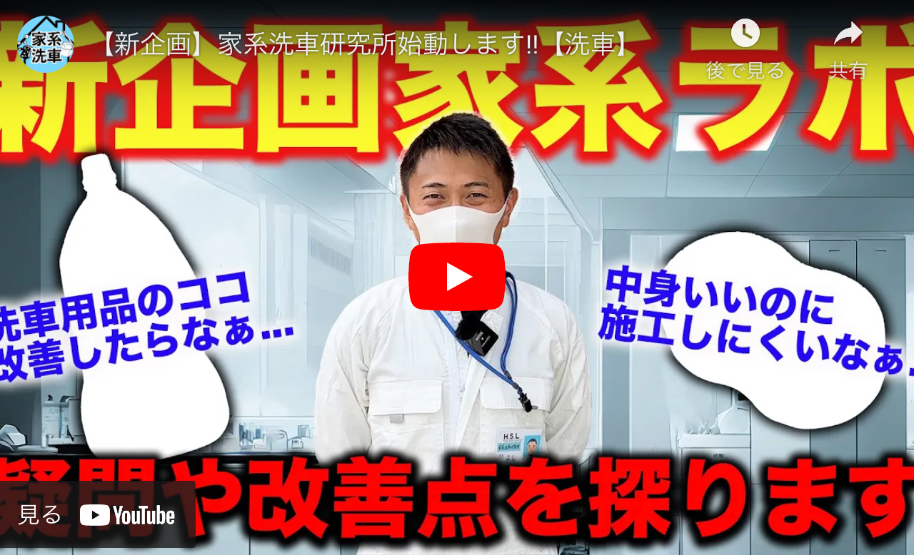 今回の洗車動画は新企画!家系洗車研究所です!!