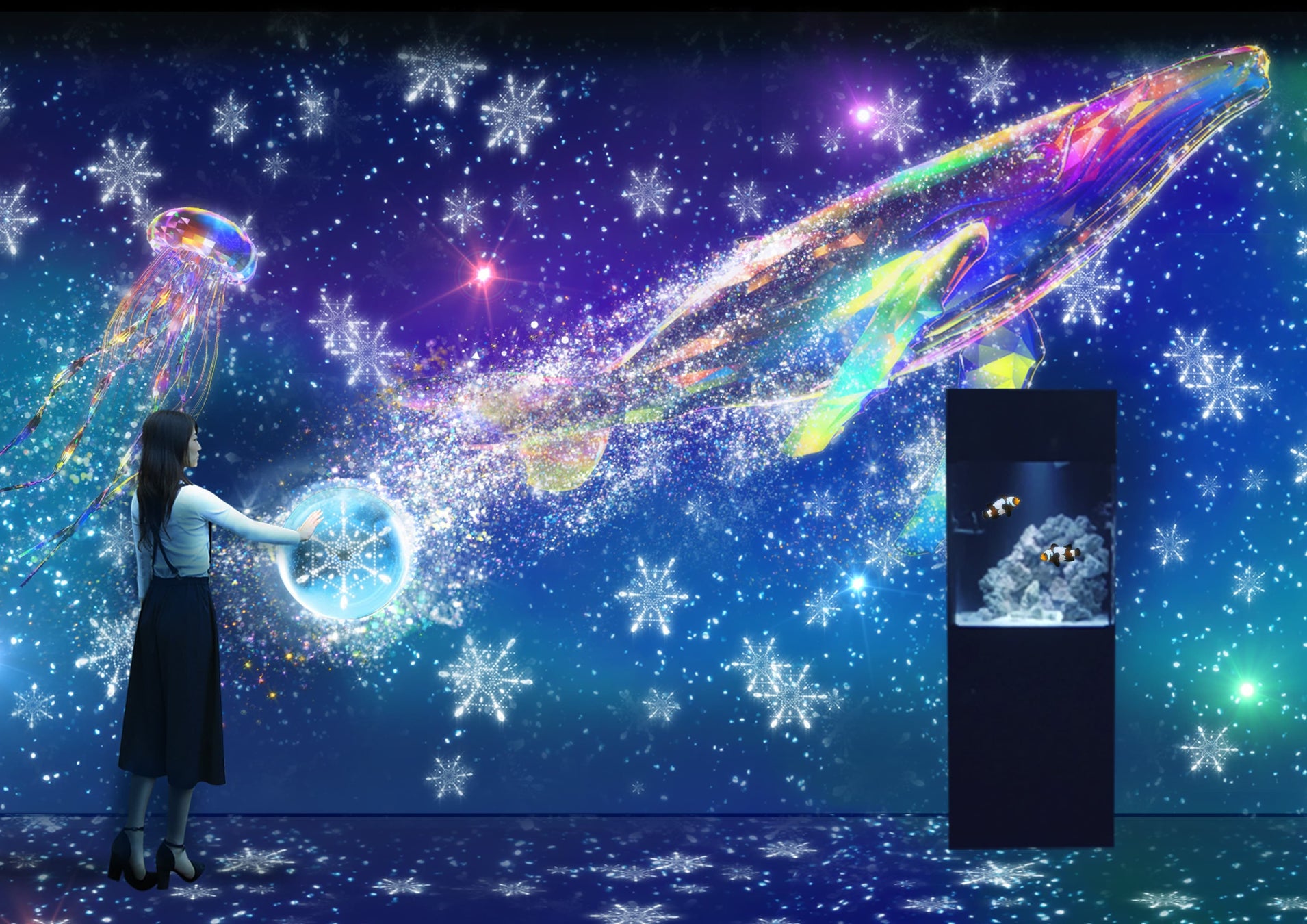 マクセル アクアパーク品川が雪の世界に。ネイキッドコラボの没入型イルミ