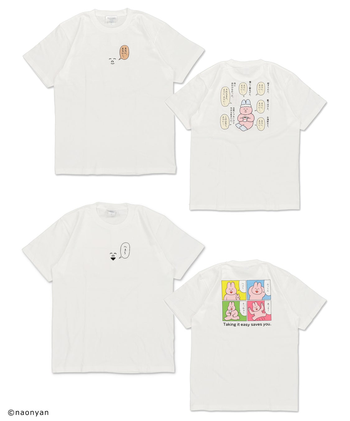 今回のコラボレーションはなおにゃん氏ならではのイラストエッセイの世界をアパレルや雑貨に落とし込み、それぞれのアイテムにはキャッチコピーをつけ、商品名から拘り、身につける人の心にそっと寄り添うような…そんな想いが込められています。