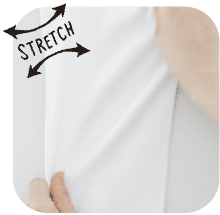 後ろ身ごろはカットソーで、それ以外はストレッチダブルガーゼというふたつの伸びる生地で仕立てています。のびやかなカットソー素材は背中のつっぱりを防ぎ、腕も肩もストレスなく自由自在・快適に動かせます。