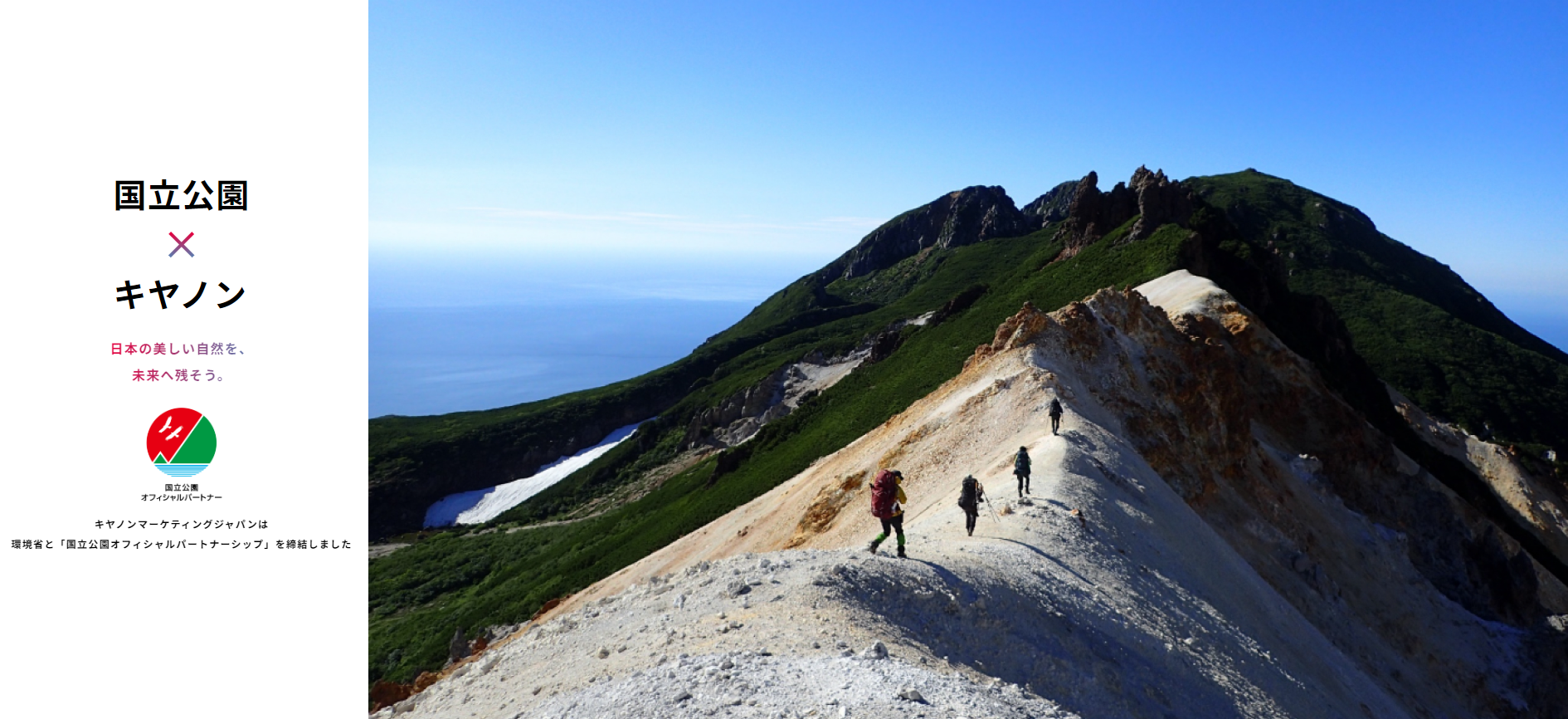 日本の傑出した自然の風景地であり、生物多様性保全の屋台骨である国立公園について、環境省の取り組みと連携・協力し、キヤノンのデジタルカメラ関連製品の提供やWebサイトでの情報発信などを通して、その自然環境の保全や魅力発信に貢献します。