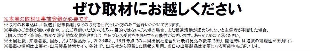 ※記載の出展社数・製品数・国数は、同時開催展を含む2023年3月10日時点での最終見込み数字であり、開催時には増減の可能性があります。