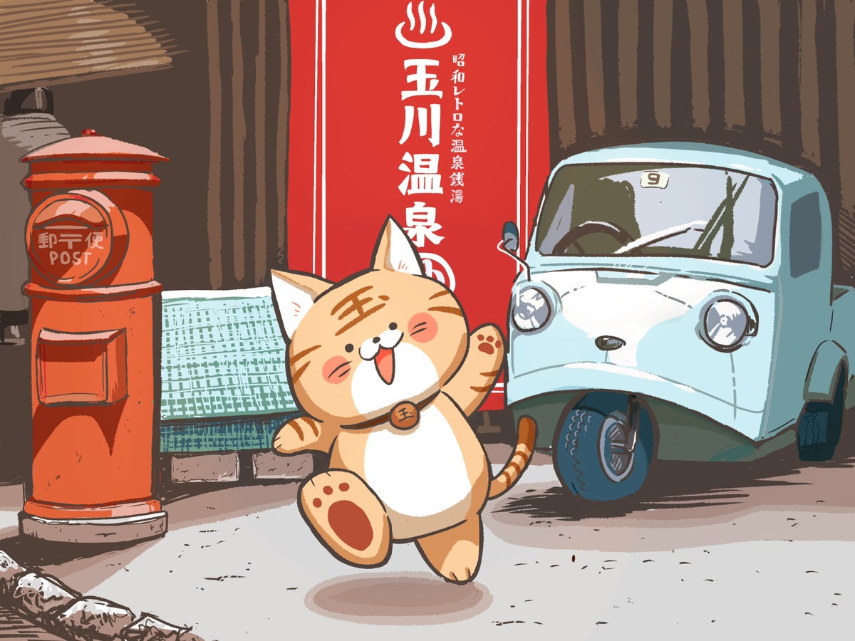 昭和レトロな温泉銭湯 玉川温泉のオリジナルキャラクター、地域を盛り上げる茶トラ猫「玉ちゃん」が誕生!