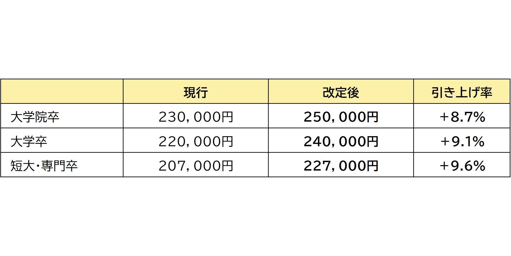 2024年4月から当社に入社する新卒社員にも、当社の将来を担う優秀な若手人材の採用と働きがいを向上する目的から、初任給一律2万円(約8~9%)の引き上げを決定しています。