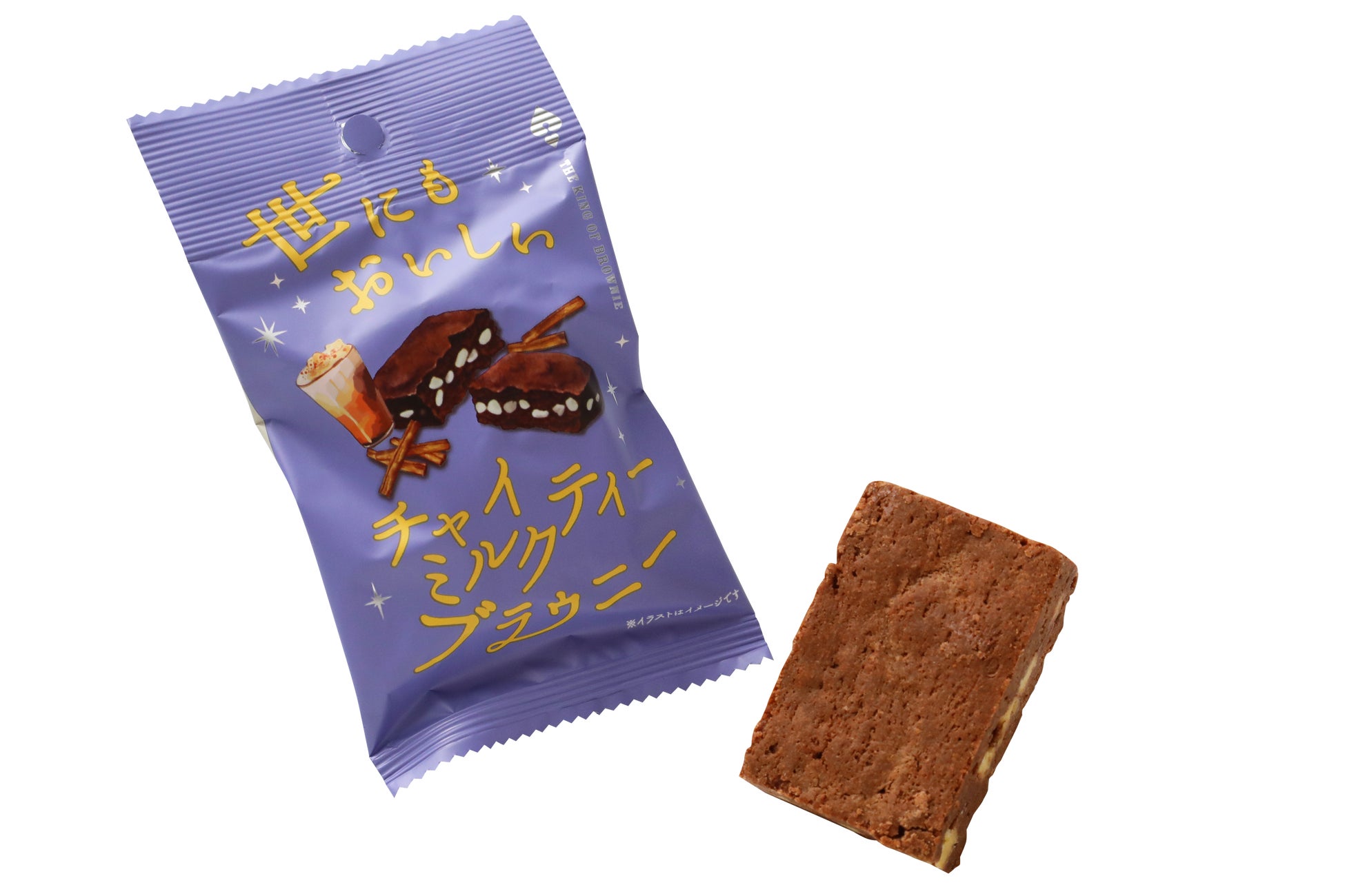 『世にもおいしいチャイミルクティーブラウニー』は、本場インドのチャイをイメージして、シナモンパウダーとホワイトペッパーのスパイスを使用したブラウニー生地に、ホワイトチョコチップをサンドして焼き上げました。香り高いスパイスとまろやかな紅茶の味わいが広がります。