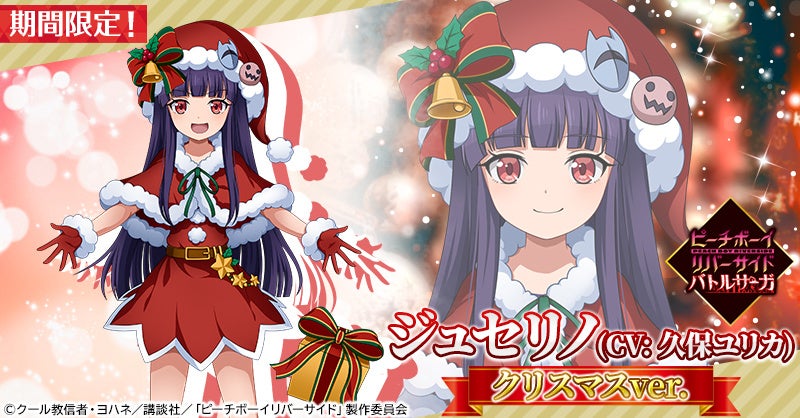 CTW株式会社は、ゲームサービス「G123」にて配信中のHTML5ゲーム『ピーチボーイリバーサイドバトルサーガ』にて、「ジュセリノ(クリスマス)」が登場したことをお知らせいたします。