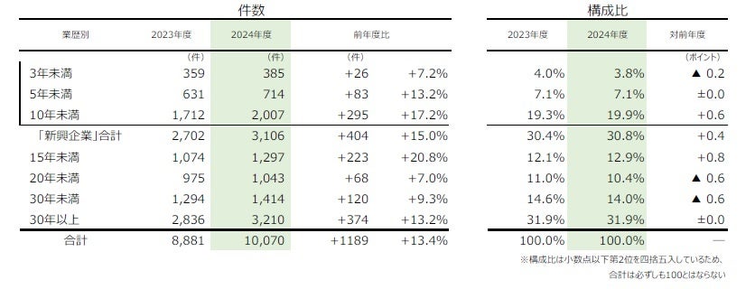 業歴別:『新興企業』は3106件、2000年度以降で最多を記録