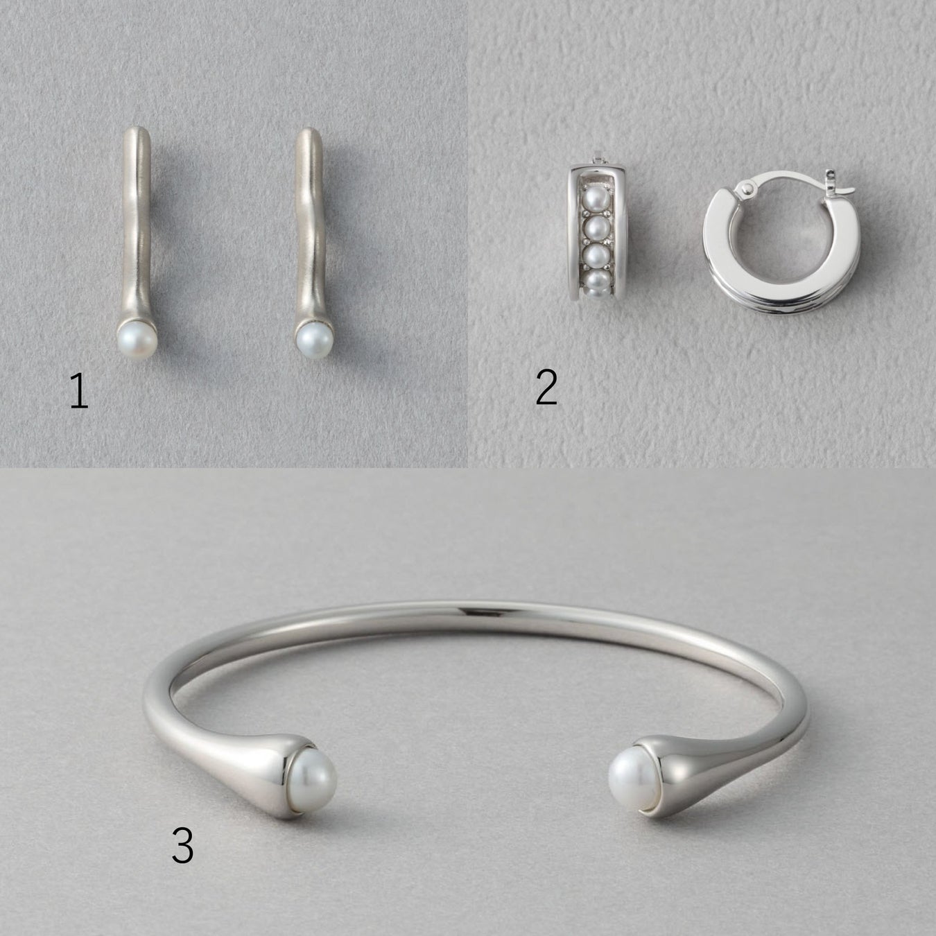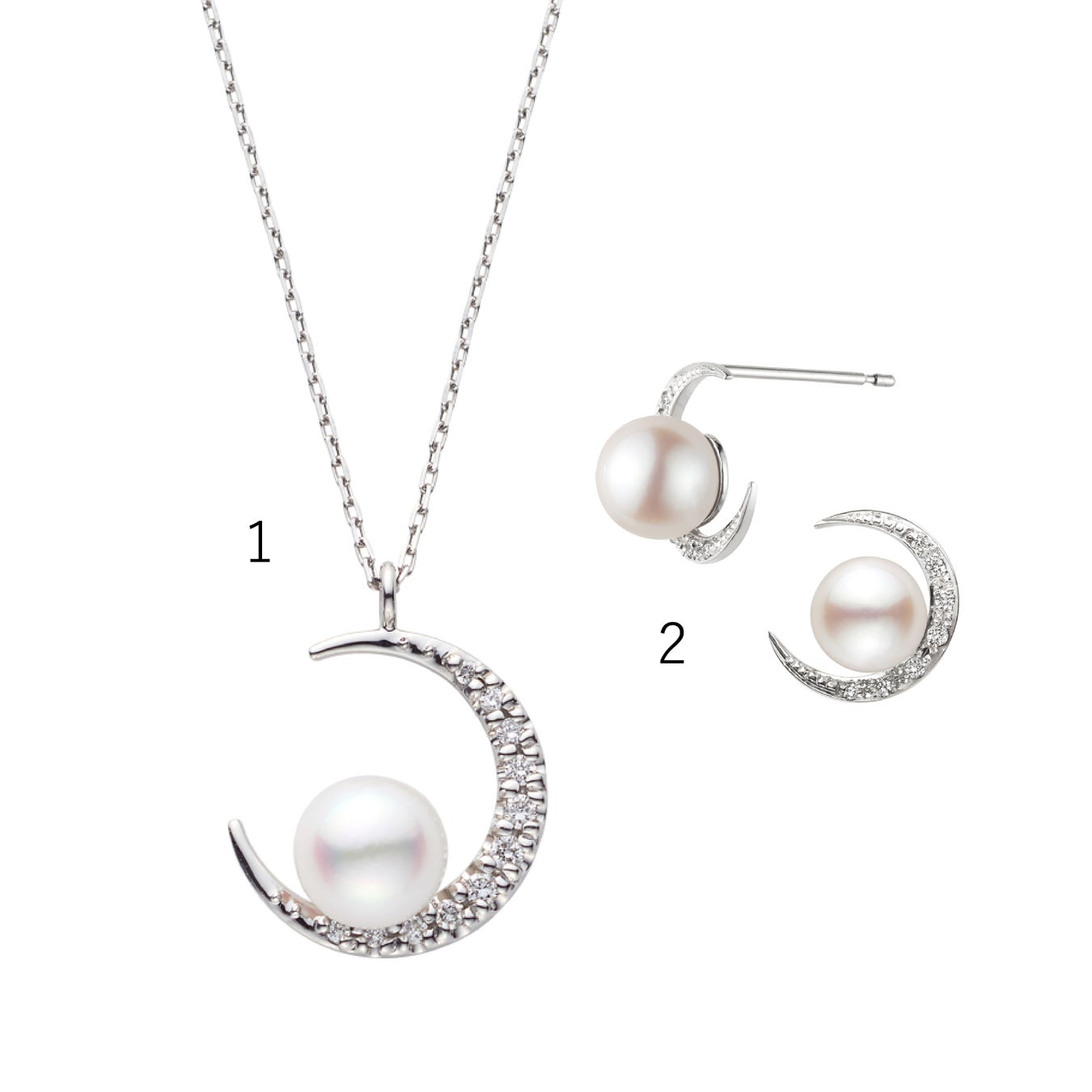 2025年後半のラッキーモチーフ・カラーの、「月」「パール」「ホワイト」すべてを取り入れたアクセサリー。