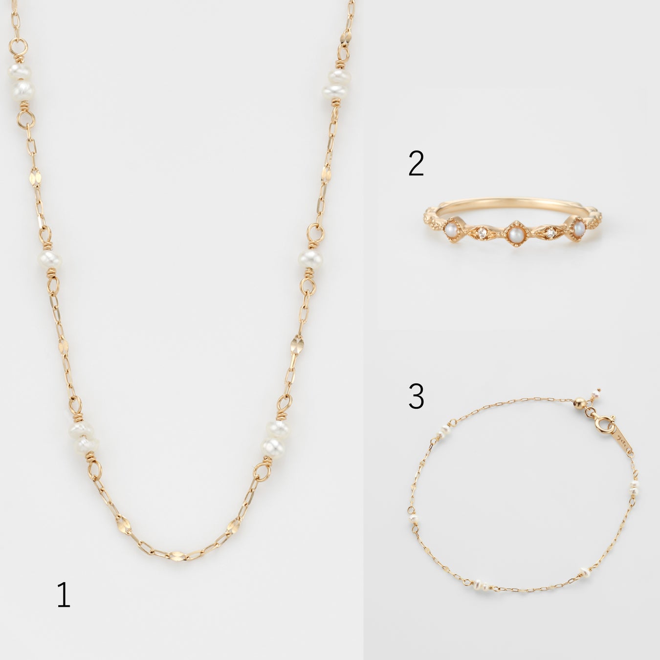 1.ネックレス(K10YGほか) 33,000円 2.リング(K10YGほか) 38,500円、