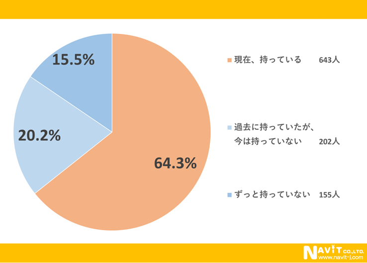 扇子を「現在、持っている」という方が64.3%で多数派となっています。また「過去に持っていたが、今は持っていない」という方は20.2%で過去まで含めて扇子を持っていたという方が全体の84.5%を占めています。