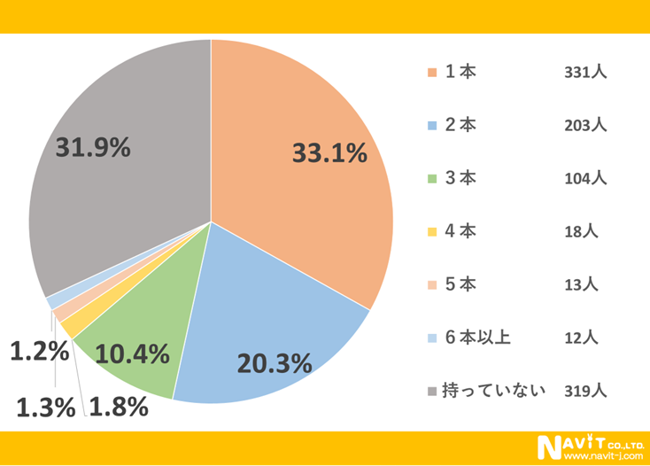 扇子を「1本」持っているという方が33.1%と1番多いです。「2本」持っている方は20.3%、「3本」持っているという方は10.4%でした。複数本(2本以上)所持している方は全体の35.0%となっており、約3分の1の方が、複数所持していることがわかります。