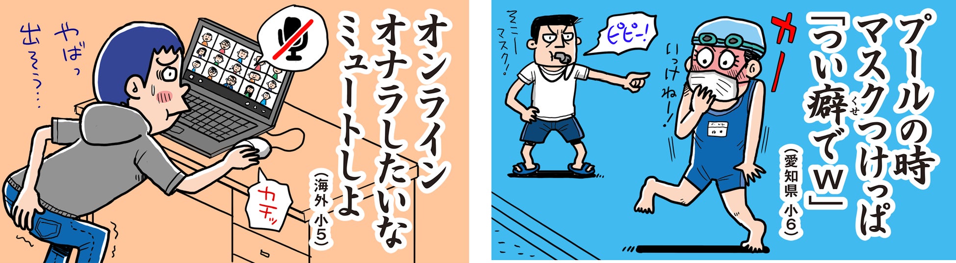 「マスク」着用や「オンライン」授業やゲームといったニューノーマルな日常をユーモラスに切り取っていたり、夏休みの情景を「コロナ禍」ならではの語彙を使用して表現していたりと、コロナ禍3度目の夏、子どもたちが明るくたくましく過ごす様子が伝わってきます。