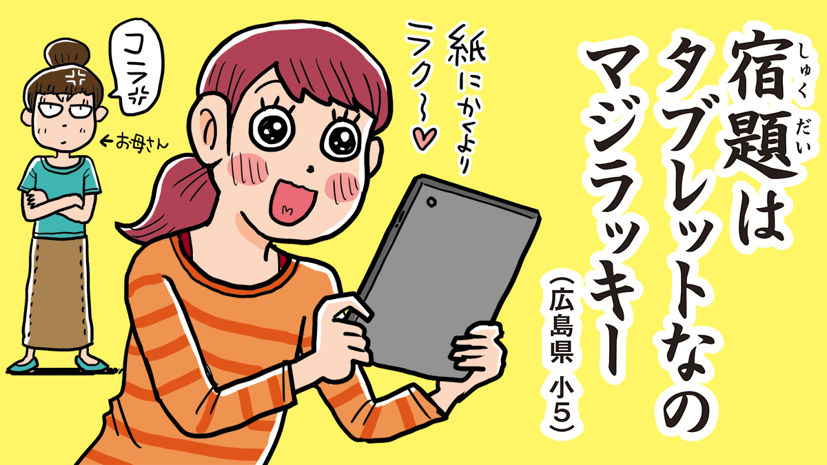 ・タブレットで宿題をしたら、答えを、調べたりできて、とってもべんり。
