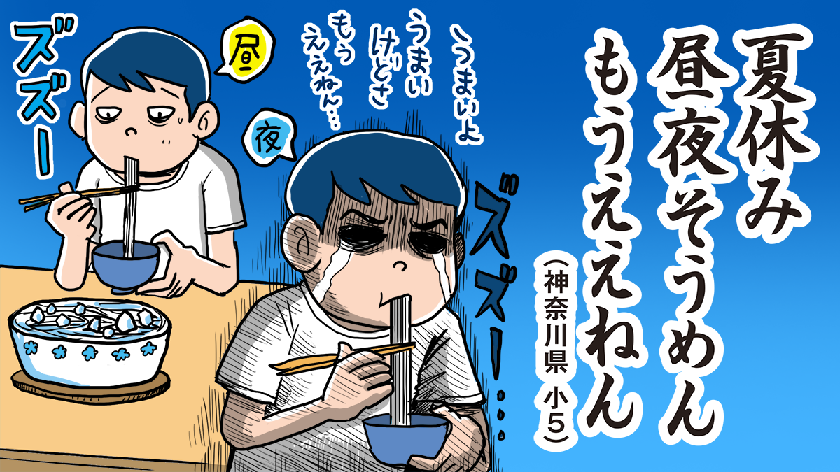 ・私も、ずっとそうめんがでて、もういいよーって思ったことがあるのでとても共感したから。それに、関西弁のツッコミがあって面白いと思ったから。