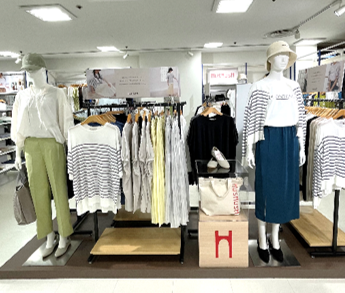 まるひろ南浦和店とイオンモール船橋店は、「ハッシュアッシュ」モデル店舗として、新什器とブランドサイン、POPを含めたVMDパッケージを組み、商品展開数に合わせてシーズン毎のアパレル、服飾雑貨のお客様に快適に買い回りをいただける空間を提案いたします。