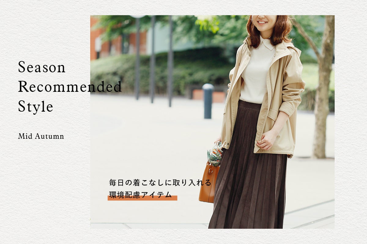 今回のシーズンレコメンド特集では、毎日のおしゃれを楽しむ延長でサステナブル活動に繋がるアイテムをスタッフ着用のコーディネートでご紹介いたします。