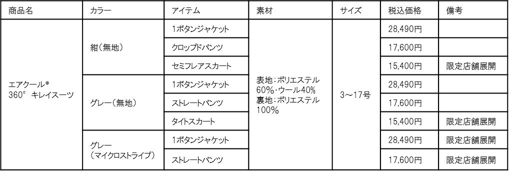 ※1「エアクール®」は株式会社AOKIホールディングスの登録商標(第5172015号)です。