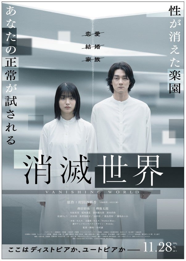 「セックス」も「家族」も、消えた未来―― 世界が驚愕する村田沙耶香の圧倒的衝撃作、『消滅世界』実写映画化! 蒔田彩珠主演、川村誠監督・脚本、話題の映画ヴィジュアルオビで11月20日重版出来。