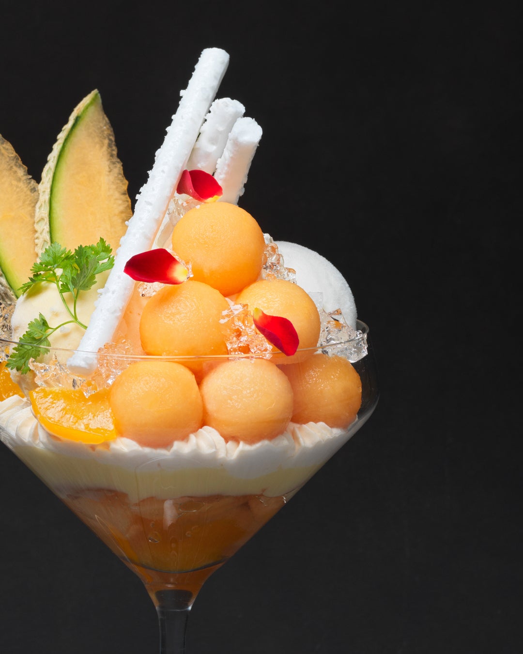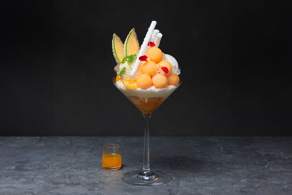 赤肉メロンの華やかな甘みに、白ワインの爽やかな香りがアクセントになった夏を彩るパルフェ。