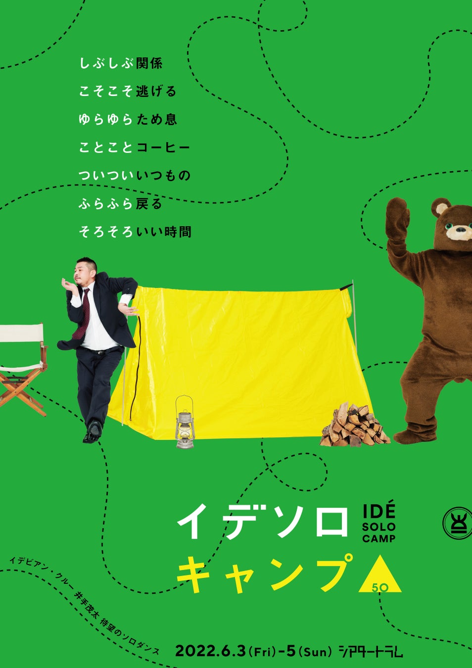 days(井手茂太/イデビアン・クルー制作事務所、東京都渋谷区)主催、イデビアン・クルー 井手茂太新作ソロ『イデソロキャンプ』が2022年6月3日 (金) ~2022年6月5日 (日)にシアタートラム(東京都世田谷区)にて上演されます。チケットはカンフェティ(運営:ロングランプランニング株式会社、東京都新宿区、代表取締役:榑松 大剛)にて発売中です。
