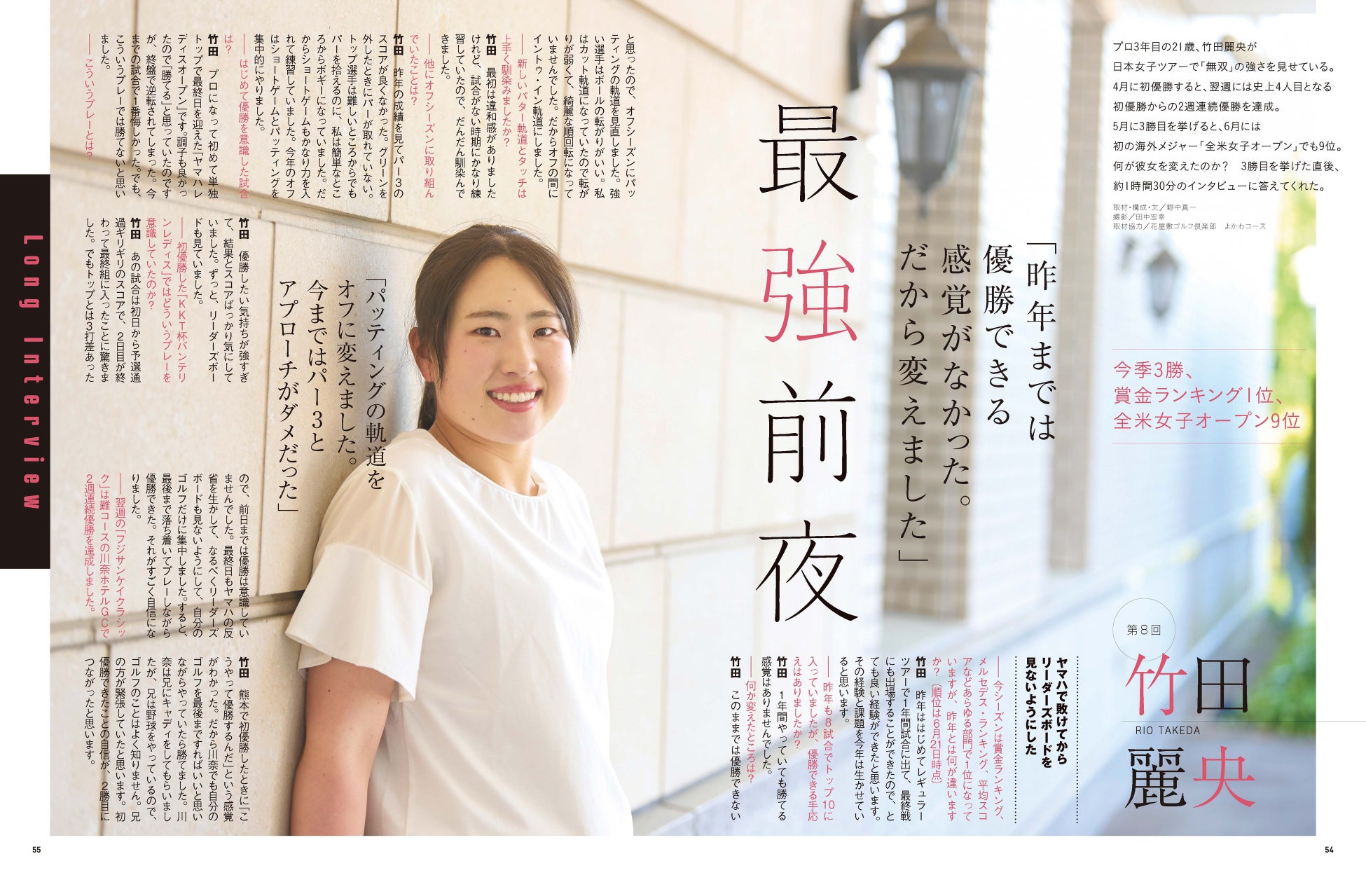 ロングインタビューは初優勝から2連勝し、その後も1勝を重ねて3勝。全米女子オープンでも活躍したルーキーの竹田麗央の今がわかる本音トークが読めます。