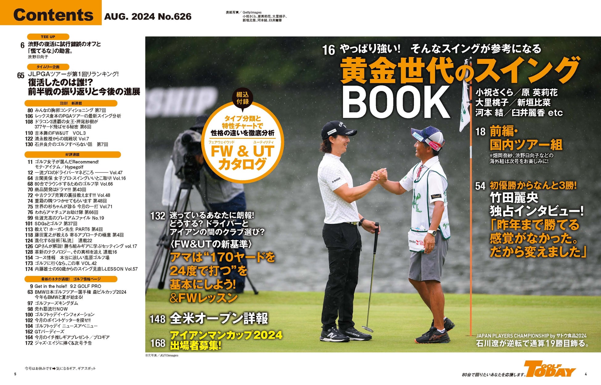 『GOLF TODAY(ゴルフトゥデイ)2024年8月号』は7月5日発売!!特集は「やっぱり強い!黄金世代のスイングBOOK 前編・国内ツアー組」